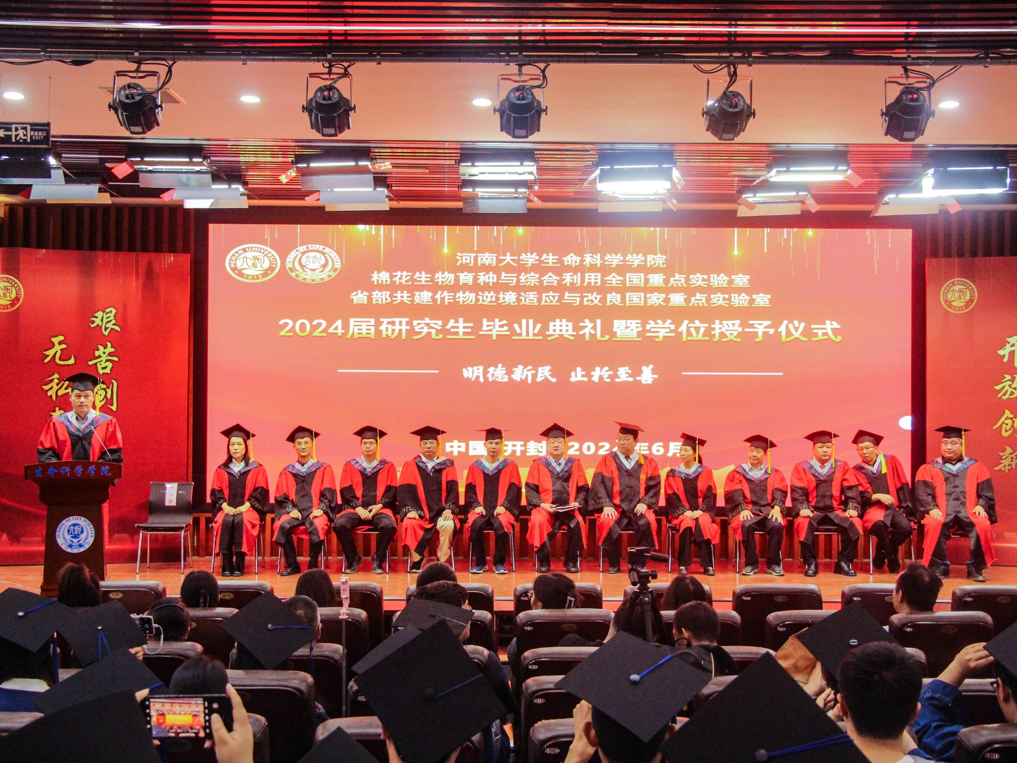 6月17日下午,bat365在线平台官网登录、棉花生物育种与综合利用全国重点实验室/省部共建作物逆境适应与改良国家重点实验室2024届研究生毕业典礼暨学位授予仪式在学院圆形报告厅举行。学院领导班子、学位评定分委员会成员、家长代表、教师代表以及2024届毕业研究生参加典礼。典礼由学院党委副书记宋永鹏主持。