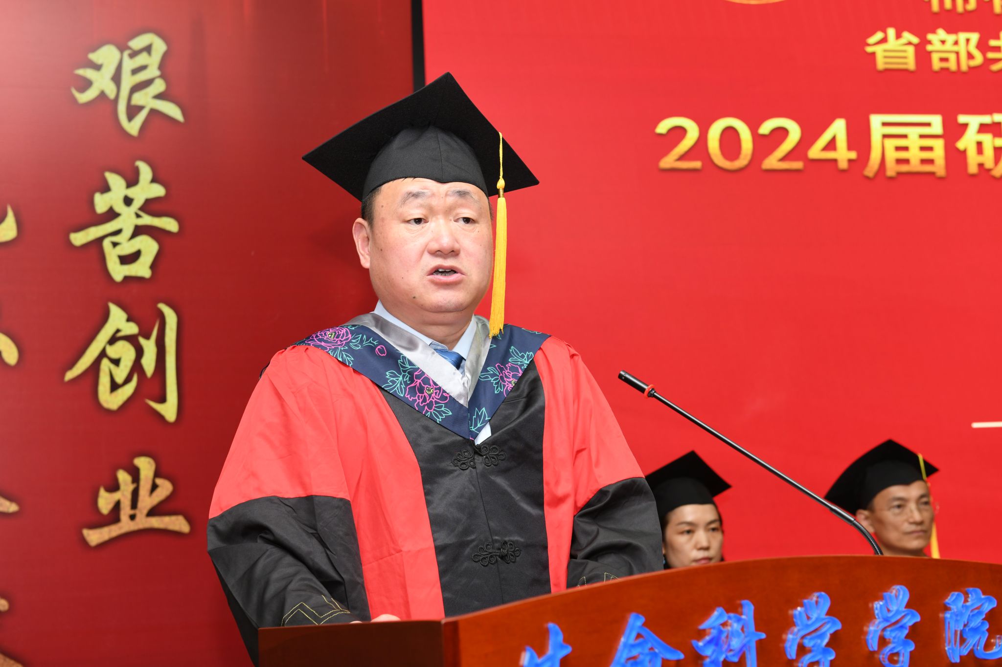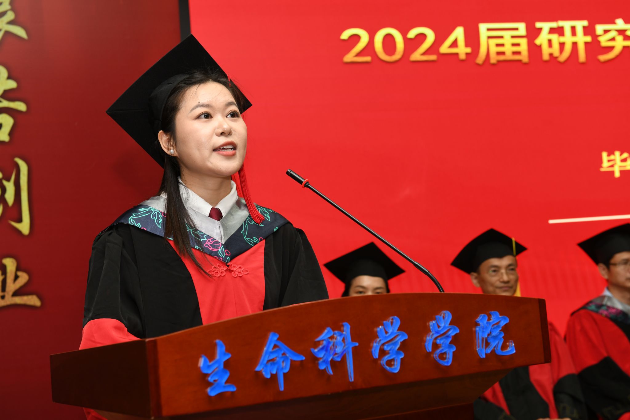 研究生导师代表孙晓真挚地表达了对毕业生的祝贺与不舍,回顾了与同学们在一起的时光,感谢毕业生为科学研究所做出的贡献,他鼓励毕业生们要心存感恩、热爱生活,脚踏实地、终身学习,不忘初心、勇于担当,像一粒种子扎根土壤,向阳而生,在时代的洪流中找到适合自己的生态位,取得优异的成绩。