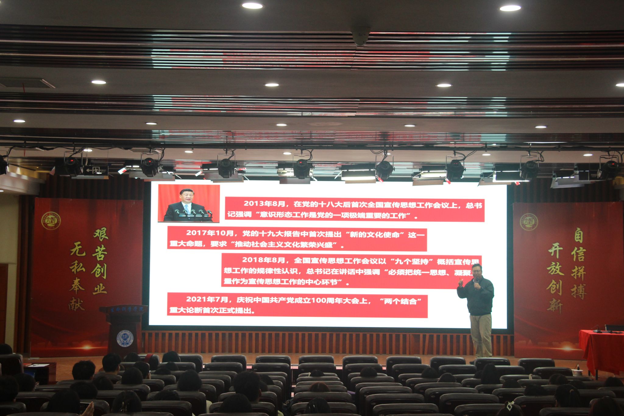 10月8日下午,bat365在线官网2024级研究生综合素质教育讲座在生科院圆形报告厅举行,马克思主义学院副院长刘嘉尧做了题为《学习贯彻习近平文化思想 铸就社会主义文化新辉煌》的专题讲座,课程负责人李志芳主持讲座。