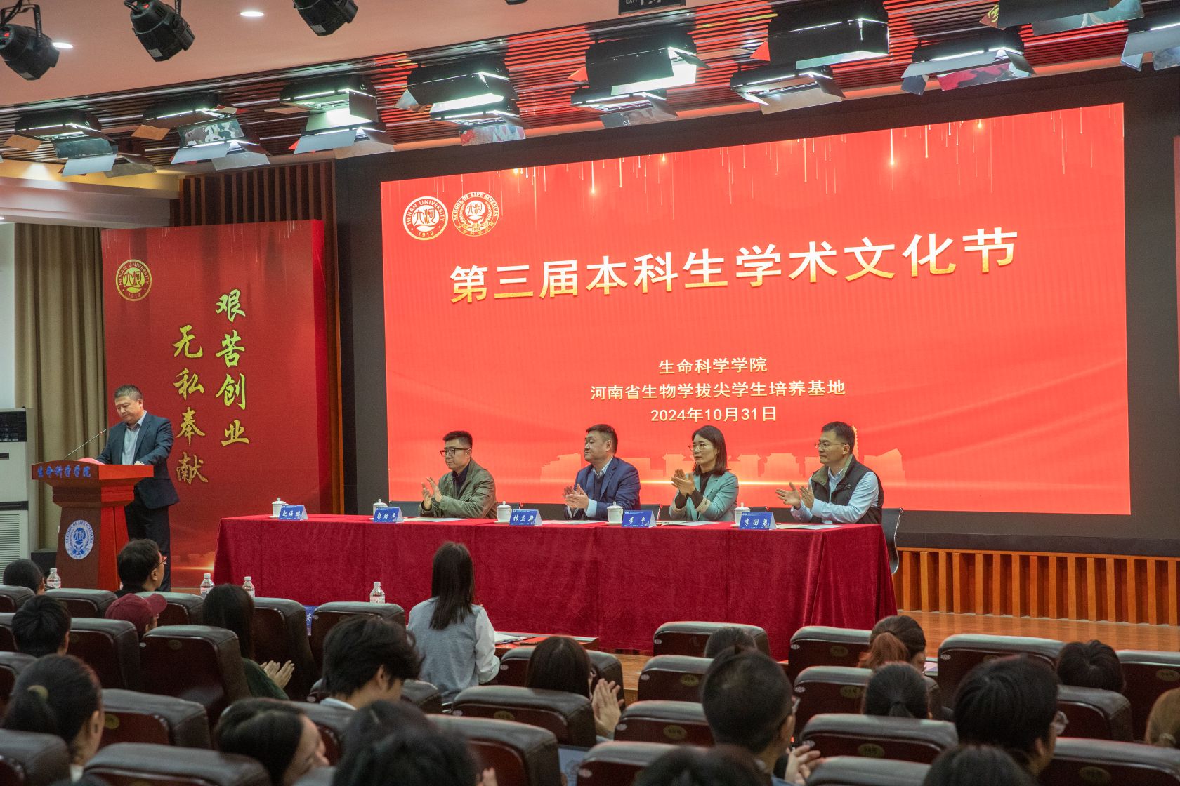 张立新致开幕辞。他表示,学术文化作为校园文化建设的核心内容,是支撑和引领大学发展的重要软实力。他强调,本科生作为极具潜力、极富创造力和创新精神的青年群体,是助推科学研究的有生力量,更是繁荣学术文化的重要主体,应牢牢把握此次学术文化节的契机,以“自信、拼搏、开放、创新”的新河大精神为追求,发挥一流学科优势资源,踊跃参与学术科研,积极推动文化创新,用智慧和汗水,浇铸好成长、成才的每一个脚印。