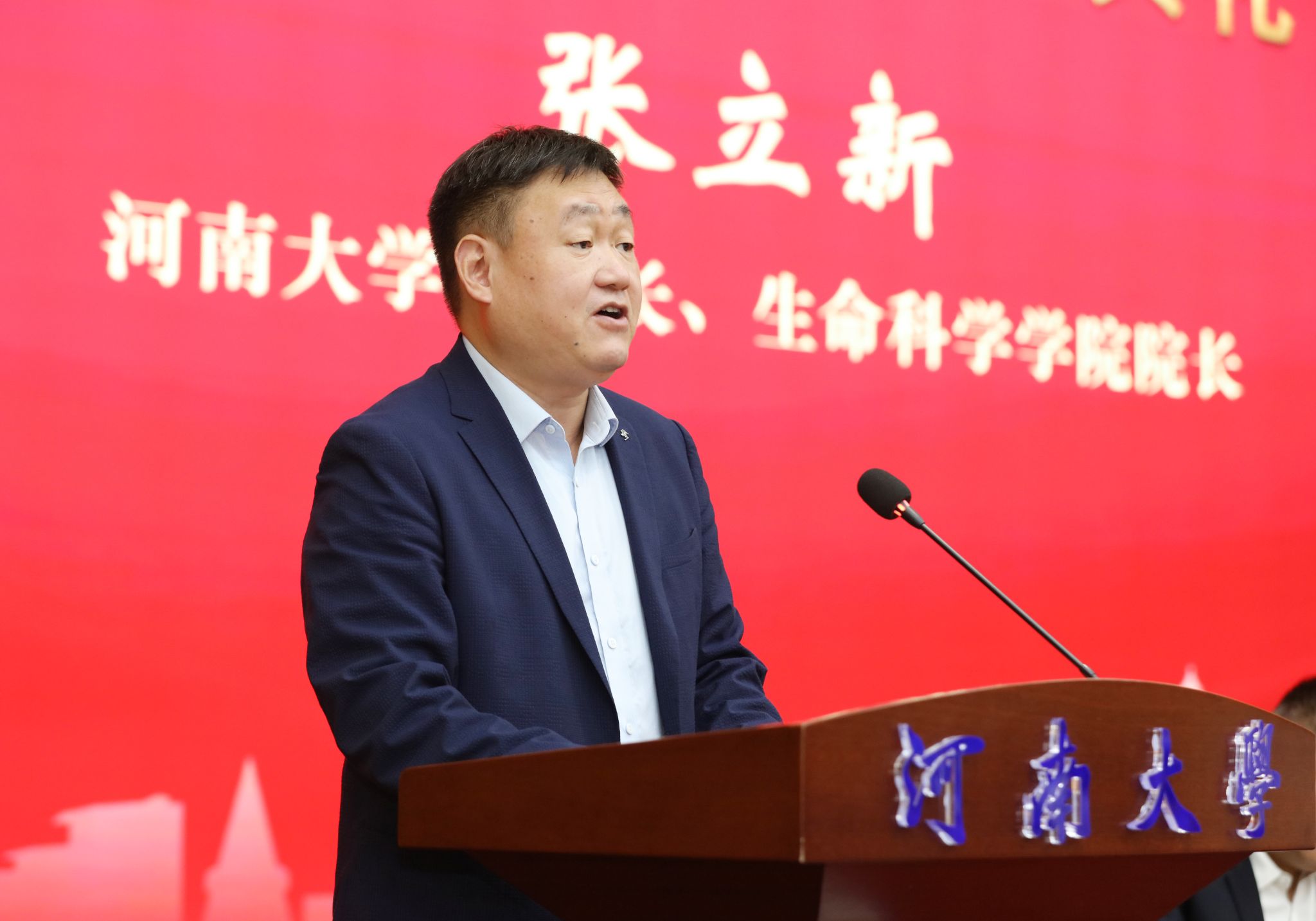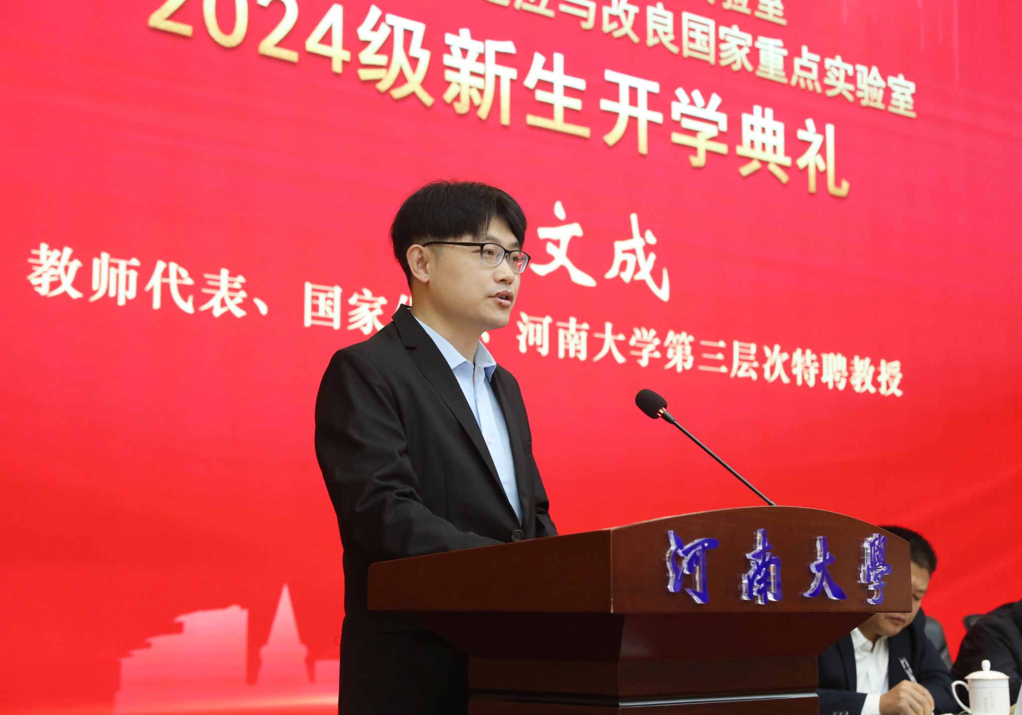 bat365在线平台官网登录副校长、bat365在线平台官网登录院长张立新教授致辞。他代表学院、重点实验室向2024级新同学表示热烈欢迎。他讲到,bat365在线平台官网登录正处在国家“双一流”、河南“双航母”战略发展期,确立了创新发展的办学新目标、新思想、新精神,每一位河大人在机遇和挑战中追寻实现梦想的奋斗路径,传承创新,奋力拼搏。他强调,bat365在线平台官网登录自1987年重建以来,经过一代代生科人的团结奋斗实现了跨越式发展,生物学科从“一个课题,两个老师,三间房子”的艰苦创业,到两次入选世界一流学科,形成了先进的学术思想和独特的学术体系,成为全国领域内的后起之秀。他希望同学们要心怀祖国、勇挑重担,牢记为中华民族伟大复兴而奋斗的使命,努力成为祖国栋梁;要珍惜时光、自律自省,怀抱梦想又脚踏实地,敢想敢为又善作善成;要持续发力、坚持创新,树立对一流创新成果的追求,以具体应对焦虑,以笃定应对变化,以经历应对迷茫,以创新应对未来。