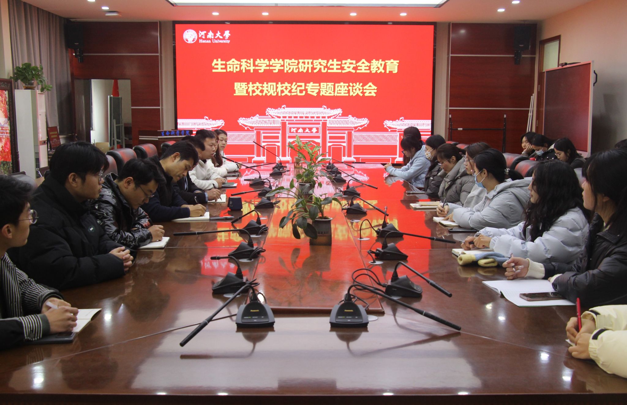 与会师生围绕研究生在校安全及校规校级展开讨论。赵海鹏指明宿舍用电安全、实验室安全、数据安全、网络安全、交通安全、人身财产安全等方面的潜在风险点,结合典型案例,提醒同学们提高安全意识,在校期间坚守纪律意识,遵规守矩,避免因散漫行为影响个人全面发展。宋永鹏结合个人求学经历,分享了防范化解安全风险的技巧和注意事项,聚焦研究生培养核心目标,充分利用学校学院各类学术资源,珍惜时光,增强自驱力,争取机会不断提升个人综合实力。