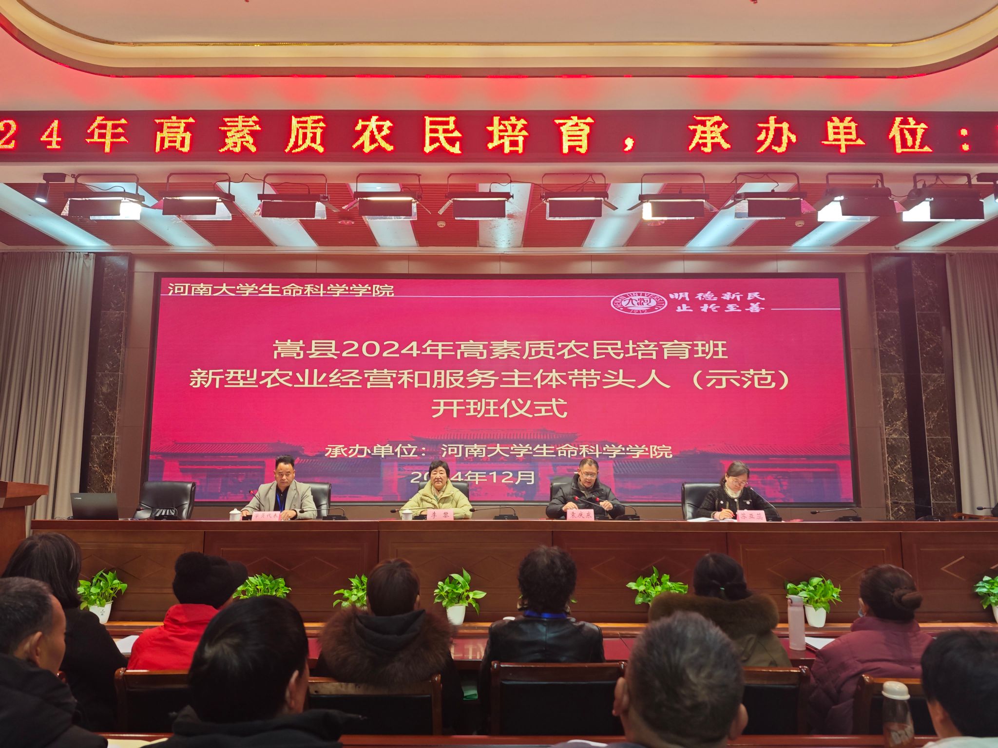 苏亚蕊宣布嵩县2024年高素质农民培育班正式开班。开班仪式结束后,与会人员合影留念。