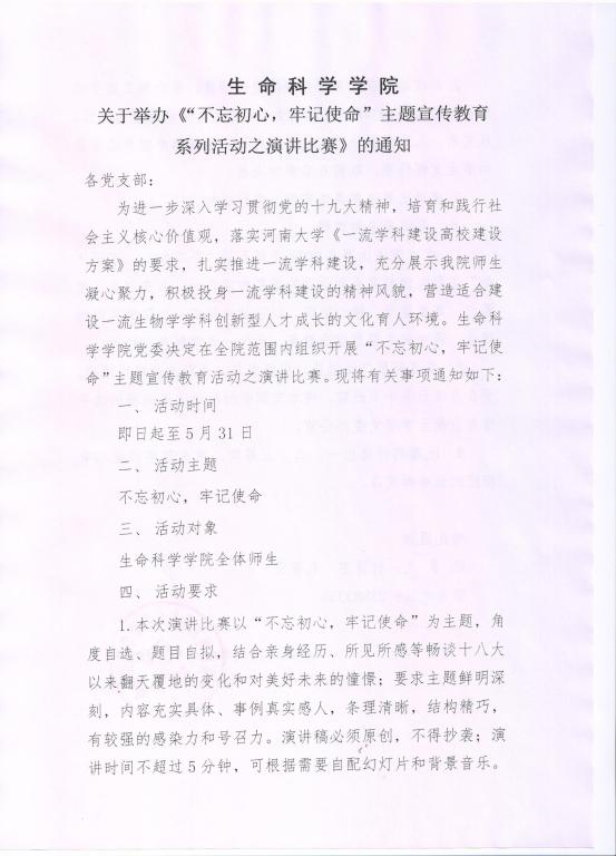 bat365在线平台官网登录关于举办《“不忘初心,牢记使命”主题宣传教育系列活动之演讲比赛》的通知