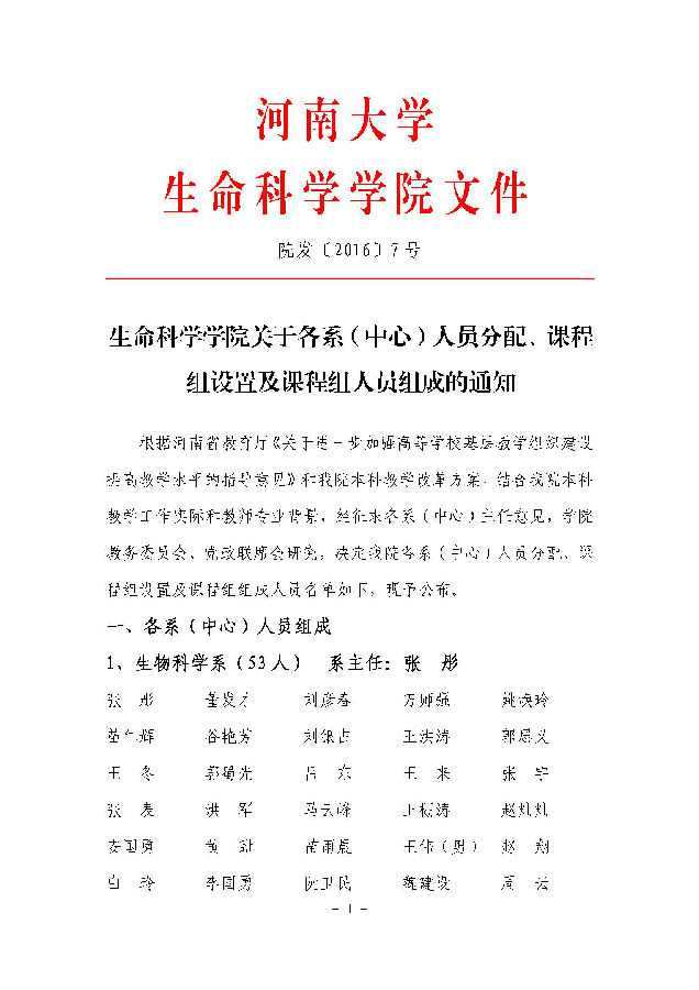 bat365在线平台官网登录关于各系(中心)人员分配及课程组设置