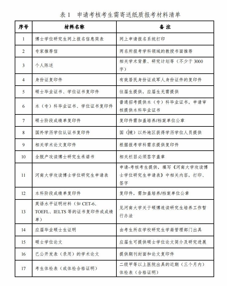 硕博连读和申请-考核考生须同时提交相关报名材料的纸质版和电子版,申请考生纸质材料寄送地址:河南省开封市bat365在线平台官网登录研究生工作办公室(投寄材料请选择中国邮政EMS)张彭湃老师收,联系电话:15237807172,邮编:475000,材料寄送截止时间:2024年4月17日,逾期视为放弃考试资格。电子版报名材料发送到bio_apai@163.com,截止时间:2024年4月17日。电子材料须扫描为PDF格式,整合成一个压缩文件,以考生姓名命名。
